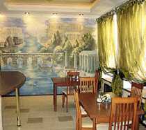 В кафе гостиницы "Александрия" проходят завтраки для гостей, а днем кафе трансформируется в зал для проведения конференций и переговоров вместимостью до 15 человек.