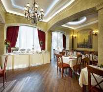 На втором этаже отеля "Александровский" расположен зал ресторана, интерьер которого выполнен в стиле Царской эпохи. Высокие колоны, позолоченная лепнина, панорамные окна, украшенные гардинами - все это придаст вашему банкету, фуршету, юбилею или свадьбе неповторимое праздничное настроение и подчеркнет торжественность события. Меню ресторана весьма разнообразно, и включает в себя русскую, украинскую и европейскую кухни. Также круглосуточно работает лобби-бар с большим выбором напитков.
