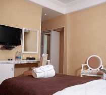 Отель предлагает просторные и комфортабельные номера категорий "Стандарт", "Полулюкс" и "Люкс". Все стандартные номера, как одноместные, так и двухместные, оборудованы ванной комнатой с душем, современной сантехникой, халатом и феном.