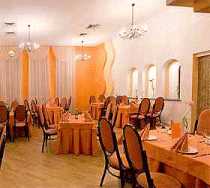Ресторан отеля "Апельсин" представлен тремя залами - "Ретро-залом", "Каминным" и "Банкетным". В залах ресторана гостей ожидает уютная атмосфера и прекрасные блюда украинской и европейской кухонь. В любом из них можно организовать незабываемое семенное торжество, корпоративный вечер или свадьбу. Также работает лобби-бар с летней террасой, расположенной в парковой зоне на территории отеля. Кроме того, гости могут посетить ресторан "Восточный Двор", который находится на некотором удалении от главного здания.