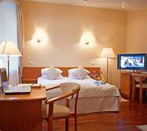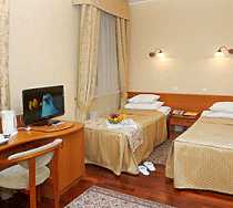 К услугам гостей - уютные одно- и двухместные номера, а также номера повышенной комфортности, соответствующие европейским стандартам. Элегантные интерьеры отеля выполнены в теплых светлых тонах, а оборудование "Аркадии" отвечает всем современным требованиям. В номерах установлены кондиционеры, индивидуальные сейфы, телевизоры со спутниковыми каналами, минибары.
