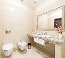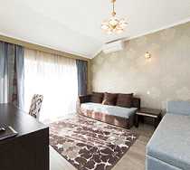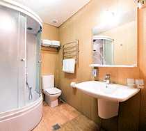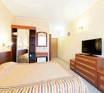 В оснащение стандартного номера входит одна двуспальная либо две односпальные кровати, кресло-кровать, шкаф-купе, комод, журнальный столик, телевизор с плоским экраном, холодильник, сплит-система, сейф и набор посуды. Ванная комната оборудована душевой кабиной, современной сантехникой и феном.