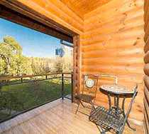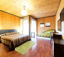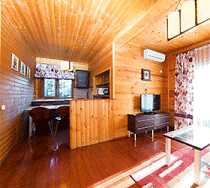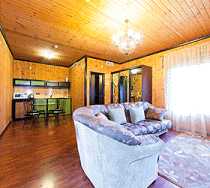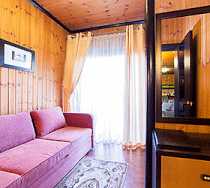 На территории отеля находятся два корпуса - уютный деревянный трехэтажный коттедж и современное пятиэтажное здание.