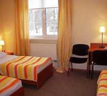 В комплектацию гостиничных номеров входят - удобные кровати, рабочий стол, платяной шкаф, холодильник, телевизор, дополнительное освещение, полностью оснащенная ванная комната.