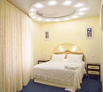 В гостинице 16 просторных и комфортабельных номеров, каждый из которых оснащен уютной мебелью, большой двуспальной кроватью, кондиционером, автономным отоплением, спутниковым телевидением, сейфом, беспроводным Интернетом, телефоном, минибаром, балконом, ванной комнатой с душем или джакузи, феном. Гостиница предоставляет следующие категории номеров: одноместные, двухместные, полулюксы, люксы и апартаменты.