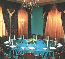 К услугам гостей просторный зал ресторана "Россия" на 150 посадочных мест, предлагающего блюда русской, восточной и средиземноморской кухонь, а также фирменные блюда и коктейли. Это подходящее место для спокойного проведения досуга, деловой или личной встречи, праздничного торжества, свадьбы, юбилея. Для любителей русского бильярда открыт бильярдный клуб, разделенный на два зала, где можно не только приятно отдохнуть, но и вкусно поесть. Также в клубе действует бар, где гости могут заказать любимый напиток, не отвлекаясь от игры. Кроме того, работают кафе "Корона" и Лобби-бар.