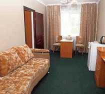 В комплектацию гостиничных номеров входит все необходимое для комфортного проживания, в том числе - удобные кровати, холодильник, телевизор с вещанием эфирных каналов, гладильная доска, утюг, два кресла, диван, стол, стулья, шкаф для одежды.