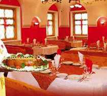 Завтрак для гостей проводится в кафе "Раздолье". Всегда на столах свежая выпечка и традиционные русские каши. Ресторан "Малиновый звон" на 60 посадочных мест предлагает на обед и ужин блюда русской и европейской кухонь, фирменные блюда от шеф-повара, разнообразный ассортимент карты вин. Кафе-бар "Охотничий домик" подает блюда, приготовленные на открытом огне. Бар оснащен музыкальным оборудованием, караоке, большими телевизионными экранами. Ресторан и кафе оказывают услуги по проведению банкетов и свадеб. По выходным и праздничным дням в ресторане звучит живая музыка.