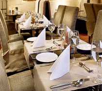 Ресторан гостиницы на 90 мест располагается на двух этажах. Здесь предлагаются блюда европейской кухни. В ресторане гостей встретит теплая, уютная атмосфера и любезное обслуживание.