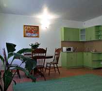 В каждом номере есть две удобные кровати, диван, стол, стулья, телевизор. Все номера оснащены кухонными гарнитурами с микроволновой печью, чайником и посудой. Также в каждом номере есть комфортная ванная комната с душевой кабиной.