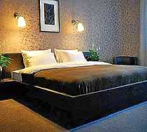 В стандартном номере - ковровое покрытие, кровать с ортопедическим матрасом, шкаф, зеркало, тумбочка, мягкие кресла, журнальный столик, комплект посуды, кабельное телевидение, Wi-Fi доступ в Интернет, ванная комната с душевой кабиной, фен, комплект махровых полотенец, тапочки, индивидуальные принадлежности, швейный набор. Всем гостям предлагается завтрак.