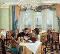 В отеле работают несколько ресторанов и баров - ресторан авторской кухни "Grand Palace" с роскошным интерьером, демократичное заведение "МАРИО-пицца", лобби-бар с видом на море и открытое кафе "Променад", приглашающее гостей в летний период. Если нет желания выходить из уютного номера, то можно заказать доставку блюд и напитков (room-service).