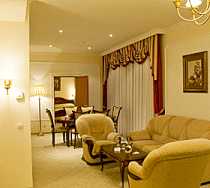 Для размещения отель предлагает 132 комфортабельных номера различных категорий - 16 "Модерейт", 83 "Стандарт", 12 "Стандарт Улучшенный", 12 двухкомнатных "Люкс" и 3 трехкомнатных "Люкс". Каждый номер элегантно и со вкусом обставлен, оборудован системой кондиционирования воздуха, спутниковым телевидением, внутренней и международной телефонной связью, доступом в Интернет, мини-баром и другими удобствами. В ванных комнатах установлены ванны либо душевые кабины, предоставляются халаты, тапочки и наборы косметических принадлежностей. Все номера обслуживаются круглосуточно.