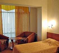 В каждом номере есть шкаф-купе, удобные кровати, диван и два кресла, стол, телевизор и холодильник.