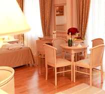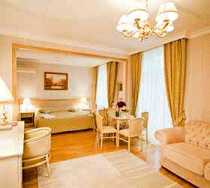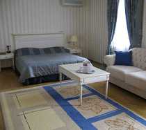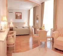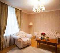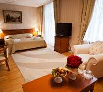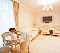 Сплит-система создаст комфортную температуру в помещении, а плазменный телевизор и DVD проигрыватель позволят отвлечься от ярких событий. Также к услугам гостей сейфовая ячейка, мини-бар и телефон. В ванных комнатах гости найдут полотенца, халаты, тапочки, фен, фирменную косметику.