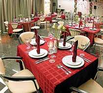 В холле перед залом - зона встречи гостей, рядом банкетный зал, гардероб. Меню кофе-пауз предлагаются в различных вариантах.