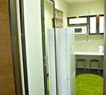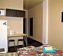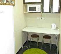 В номерах оборудованы кухонные зоны, где установлены холодильники, микроволновые печи и электрические чайники, а также наборы посуды.