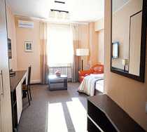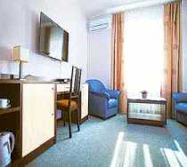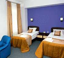 В комплектацию номеров входят - одна двуспальная либо две отдельные кровати, прикроватные тумбочки, журнальный и письменный столы, мягкая мебель, плазменный телевизор, электрический чайник и чайный набор, просторная ванная комната со всеми необходимыми принадлежностями.