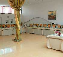 Гостиничный ресторан располагается в отдельном крыле здания. Это замечательное место отдыха для ценителей стиля, комфорта и уюта. Меню ресторана изобилует разнообразием блюд русской и европейской кухонь. Атмосфера ресторана располагает и к деловой встрече, и к романтическому свиданию, и к шумному веселому празднику. Зал ресторана вмещает до 120 человек и способен принять различные корпоративные мероприятия, презентации, юбилеи, торжества, банкеты и фуршеты, свадьбы. Также на первом этаже гостиницы располагается уютное кафе, в котором представлен большой выбор напитков, закусок и горячих блюд. Кафе работает круглосуточно.