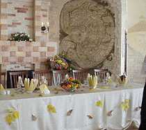 Ресторан комплекса предлагает блюда европейской и национальной кухни, а также бизнес-ланчи и различные варианты комплексного питания. Банкетный зал ресторана, рассчитанный на 80 человек, позволяет проводить корпоративные вечеринки, деловые обеды, свадьбы и праздники.