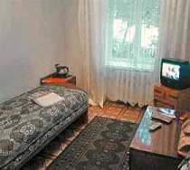 В оснащение номера "Стандарт" входит - кровать, стол, набор посуды, телевизор. Ванная комната с душем - общая на секцию из трех комнат.