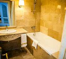 В ванных комнатах установлены ванны, предлагаются фены, халаты и тапочки.