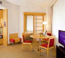 "Полулюкс" - это двухкомнатный номер, состоящий из спальни и гостиной, где расположен диван, который при необходимости раскладывается в двуспальную кровать. Таким образом, "полулюкс" оптимально подходит для тех, кто путешествует с детьми. В номере два телевизора, один в гостиной, другой - в спальне. Ванные комнаты со всеми необходимыми туалетными принадлежностями оснащены фенами, оборудованы обычной ванной и душевой кабиной.