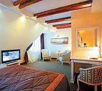 Безупречная элегантность и романтизм былых эпох плавно переплелись в изящном и уютном интерьере отеля. Темное дерево, присущее в оформлении стен и стоек, придает интерьеру холла респектабельность и основательность. Классическая мебель, деревянные пилястры. Номерной фонд - 8 номеров. В номерах: душевая кабина, фен, кондиционер, ж/к телевизор, кабельное телевидение, радио-телефон, бесплатный беспроводной Интернет на всей территории отеля, утюг и гладильная доска по запросу. Каждый из восьми номеров гостиницы, сохраняя общую стилистику, имеет свое настроение. Элегантность и камерность классики поддержана изящной в том же стиле.
