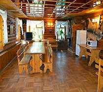 В большом деревянном доме есть все для отличного отдыха: удобная и оснащенная всей необходимой бытовой техникой кухня, бильярд и настольный теннис.