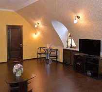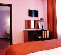 В номерах "Люкс" и "Полулюкс" есть гостиная зона с диваном.