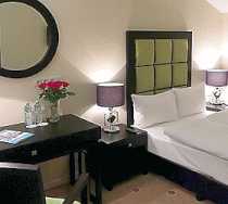 В оснащение стандартного номера входит кровать, прикроватная тумба, мягкие кресла и стул, письменный стол с настольной лампой, шкаф, кондиционер, телевизор, телефон и Wi-Fi доступ в Интернет.