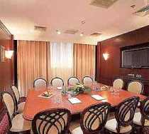 Просторный конференц-зал отеля может принять до 80 человек. Он предназначен для проведения мероприятий разного уровня: конференций, семинаров, тренингов, официальных презентаций, деловых встреч и переговоров. В зависимости от формата мероприятия, возможна разная конфигурация конференц-зала: театром, классной комнатой или круглым столом. Для проведения кофе-пауз из конференц-зала есть выход в VIP-комнату ресторана с прекрасным видом на р.Днепр. Конференц-зал оборудован флип-чартом, проекционной техникой, системой звукоусиления, микрофонами, DVD-плеером, видеомагнитофоном, Wi-Fi доступом в Интернет. Переговорная комната - идеальное место для проведения деловых встреч до 12 человек. Комната оборудована плазменной панелью, есть возможность подключения ноутбука, имеется доступ в Интернет по технологии Wi-Fi. Также гости могут воспользоваться услугами бизнес-центра: сделать ксерокопии или распечатать документы, воспользоваться факсом.