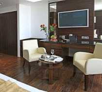 Номер категории Standard имеет площадь 32 кв. метра, просторная ванная комната, где есть и душевая кабина, и ванная. В каждом номере есть рабочая зона, так как Саен является бизнес отелем.