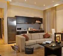 Типовой двухкомнатный апартамент состоит из спальни с двуспальной кроватью и просторным гардеробом, гостиной с плазменной панелью или широкоэкранным телевизором (в большинстве апартаментов - диваны раскладываются, превращаясь в дополнительное спальное место), кухни (полностью оборудованной всем необходимым для приготовления пищи (варочная поверхность, микроволновая печь, холодильник, чайник, посуда), и ванной комнаты (ванная-джакузи либо обычная ванная). Во всех ванных комнатах есть стиральные машины, бойлеры и полы с подогревом.