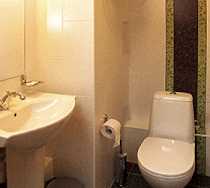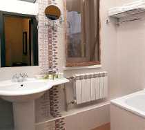 В ванной комнате - ванная, биде, фен, увеличительное зеркало.