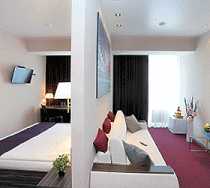 В номерах категорий Люкс помимо вышеперечисленного есть спальня, гостиная, диван, журнальный стол и мини-бар.