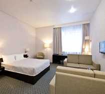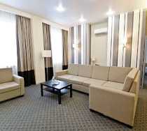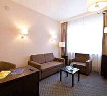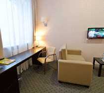 Гостиница предлагает размещение в 76 комфортных номерах, оснащенных всем необходимым для работы и отдыха.