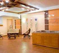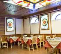 По утрам в "Трапезной" подают сытный завтрак. Интерьер ресторана создает для посетителей атмосферу уюта и гостеприимства. Стены и потолок украшены великолепными витражами ручной работы.