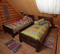 тапочки, туалетно-косметические принадлежности. Интерьер номеров оформлен в традиционном русском стиле.