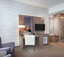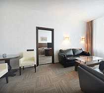 Номерной фонд насчитывает 233 гостиничных номера 12 категорий комфортности, среди которых 102 одноместных номера, 92 двухместных, 5 семейных, 18 номеров "Люкс", 8 номеров "Студия", 2 "Апартамента", а также 6 номеров для людей с ограниченными возможностями. Каждый номер оборудован удобной кроватью, письменным столом, вместительным шкафом, электронным сейфом, телефоном с прямым междугородним и международным доступом, мини-баром, системой кондиционирования, интерактивным телевидением и Wi-Fi доступом в Интернет. Ванная комната оснащена ванной, душем, феном и полным набором туалетных принадлежностей.