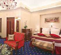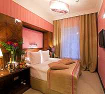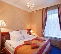 В каждом номере имеется: итальянская мебель из белого и красного дерева, кровати размера King-size (кроме одноместных номеров), подушки и одеяла с натуральным наполнителем, итальянское постельное белье, телефон с междугородней и международной связью, индивидуальный сейф, LCD-телевизоры со спутниковыми каналами, мини-бар (прохладительные напитки, закуски), система кондиционирования, Wi-Fi интернет. Окна номеров выходят на Большую Конюшенную улицу и на церковь Святого Петра и Павла.