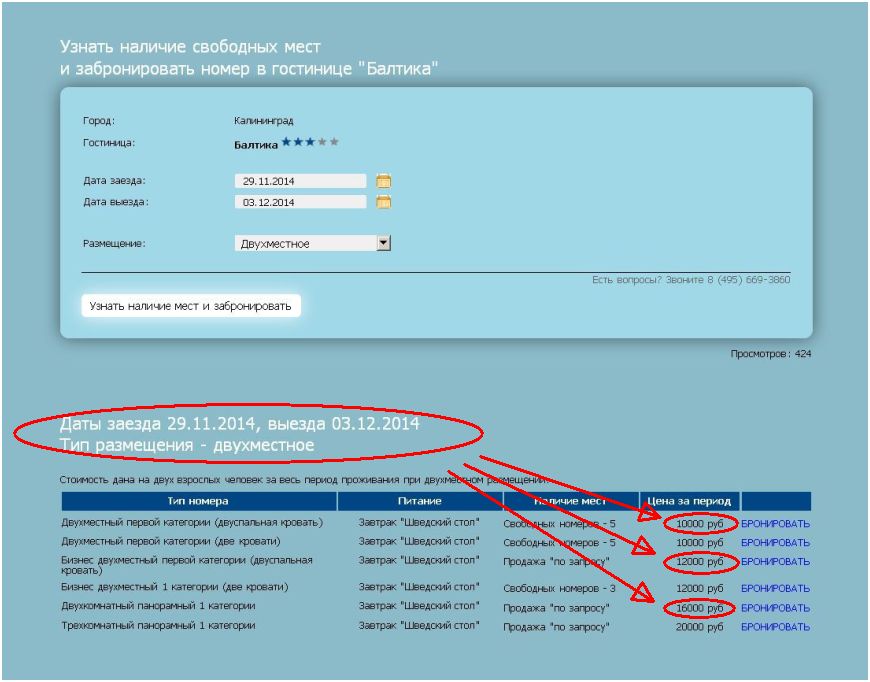 можете видеть полную информацию о ценах в гостинице на ваши даты и актуальную